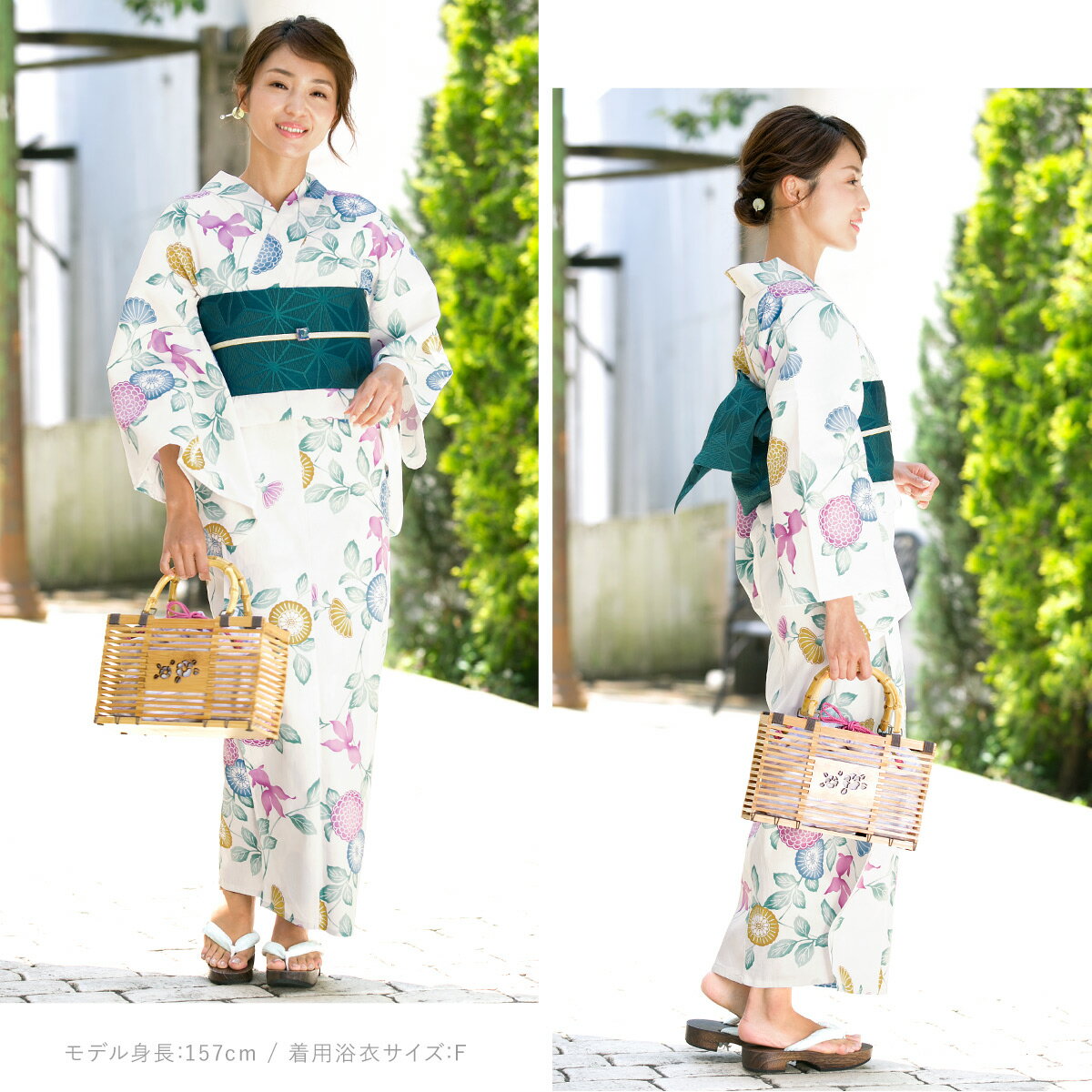 【9/4~11 20%OFF■全品クーポン1000円OFF】浴衣 セット レディース レトロ 浴衣セット 3点セット 白系 ホワイト 青 ピンク 菊 花 金魚 綿 モダン 半幅帯 女性 ボヌールセゾン マクレ 30代 40代 ママ 大人浴衣 S フリー 【送料無料】【あす楽対応】【浴衣 セット】