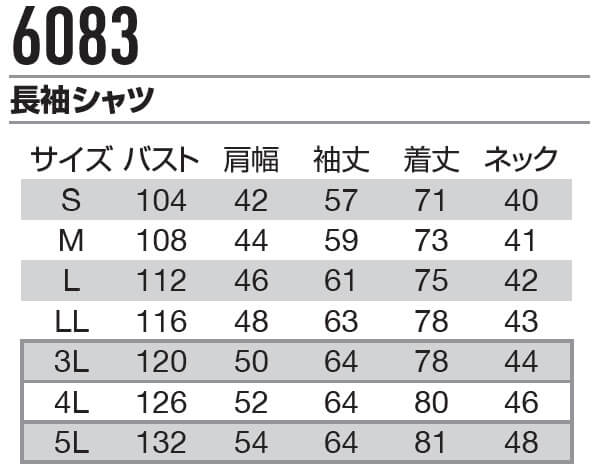 バートル(BURTLE) 長袖シャツ 6083(S〜3L) 6081シリーズ 春夏用作業服 作業着 ワークウェア ユニフォーム お取寄せ