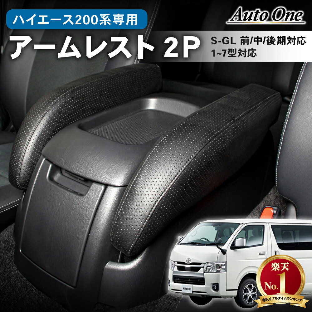 ハイエース 200系 1型2型3型4型5型 GL SGL 小物入れ付 アームレスト ブラック×パンチング PVCレザー 2個セット コンソールボックス 肘置き 肘掛け 手置く 内装 パーツ スマホや小銭やアイコスなどを簡単に収納 ナロー ワイド