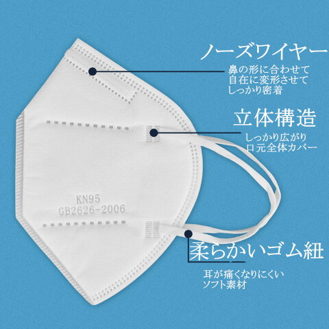 KN95 マスク 5層構造 50枚 個包装 気密性増強フック付き N95マスクと同等 使い捨て 不織布 肌に優しい 保温 花粉 予防 対面接客に メガネが曇らない 送料無料 気密性増強タイプ 1