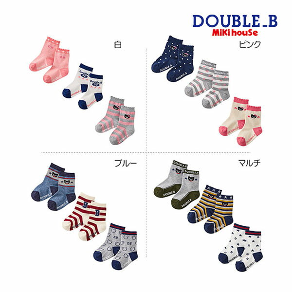 セール30%OFF (メール便可)【ミキハウス】【ダブルB】ダブルBソックスパック3足セット(11cm-21cm) MIKIHOUSE (64-9612-785) 子供用靴下 SALE