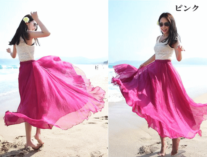 あす楽・即日発送が可能! (※条件つき) [黒][赤][白][青][ピンク] [フリーサイズ][Mサイズ]商品説明 ふんわり舞うシフォンスカート。