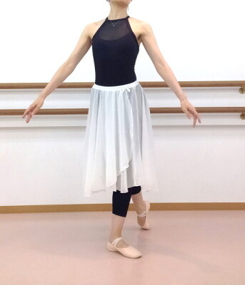 ロング 60cm丈 バレエスカート プルオン ウエストゴムスカート(巻きスカート風デザイン)【ホワイト 白】 バレエ リハーサルスカート リハーサル ロングスカート 大人 ジュニア シフォン キャラクター エレガント レッスン 着 ロングスカート