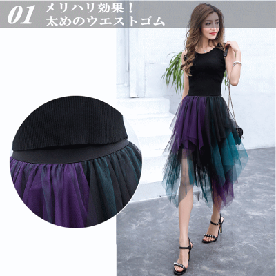 チュールスカート ダンス衣装 ランダムカット アシンメトリー チュチュ パニエ ロングスカート フレアスカート バレエチュール カラフル ヒップホップ 衣装 ダンス 社交ダンス シフォン コスチューム ステージ衣装 ミカドレス cr380-mcv